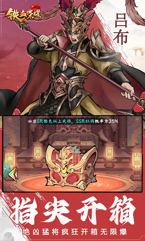 《铁血荣耀(0.05无限资源)》全新官方0.05版水墨开箱手游 ,减负玩法,轻松指尖,挂机就能白嫖各类福利,高颜值立绘和震撼配音,羁绊万千等你解锁!轻松打造不败军团,主公快来~全新0.05折版上线,海量福利免费送,助主公一统三国!全新官方0.05折上线,海量福利天天送!上线即送千抽福利,顶级红将轻松白嫖!佛系放置挂机,自动推关解放双手,宝箱大量资源轻松养成 !升级即送万元真充福利,游戏体验直线上升!魏蜀吴群四大阵营,自由搭配,感受策略对决魅力! 多种全新竞技玩法上线:过关斩将、梦境战场、三国鼎立定荣耀!