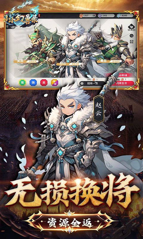 《小小幻兽录(神将送百抽)》在游戏中,玩家将穿越回到三国时期,扮演一位智勇双全的主公,与历史上著名的战略家和勇猛的武将们并肩作战。你需要收集不同的武将卡牌,通过合理的搭配,配合强大的神器灵宠等系统,组成超强的阵容。每张卡牌的属性和技能各不相同,玩家可以根据自己的战术喜好进行选择,制定独特的策略组合。除了卡牌搭配,还有各种战役副本和挑战等待着玩家去完成,通过战胜敌人,提升自己的排名和声望。 本游戏采用了精美国漫的画面风格,每一个战斗场景都充满了震撼力和视觉享受。还精心打磨了角色形象和细节,让玩家能够感受到历史上伟大将领的英勇和智慧。如果你是一个喜欢策略游戏和历史文化的爱好者,那么这将会带给你前所未有的游戏体验。快来组建属于自己的三国强大阵容,征服敌人,成为真正的三国霸主!