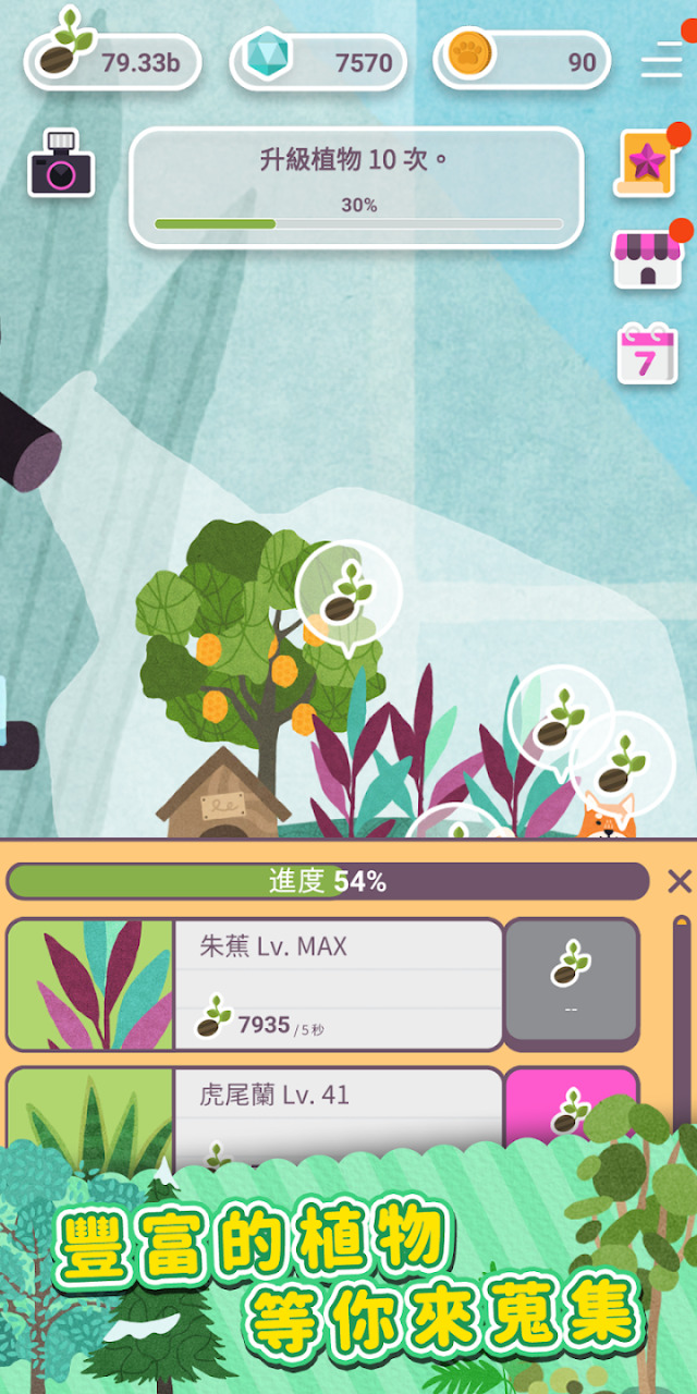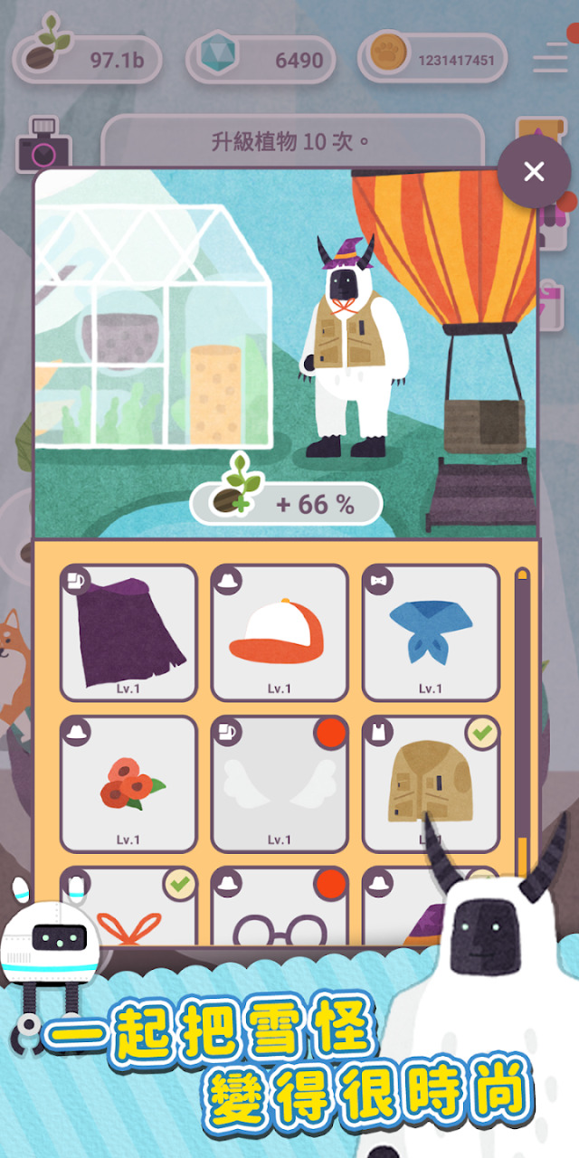 与神秘的生物「雪怪」一起利用废弃研究所中的设备复育动植物来一步一步找出过去的真相吧!■培育动植物!首先试着培育动植物吧。培养瓶内的动植物只要经过一定时间就会生产出资源,种植新的动植物或是使其成长(升级),还可以获得更多的资源喔!■雪怪也需要很时尚!在复育生态环境时,有时会找到一些雪怪也可以穿戴的外观造型穿起来之后,雪怪会感到满满动力有时候会有一些意想不到的效果喔!■在净土行动时寻找资源!在研究所附近的沙滩上,有许多过去留下来的废弃物,有机会就去清理吧!珍贵资源也许就在其中。不过需要注意危险的炸弹。跟随数字安全的避开危险吧!■收集装饰品!利用任务获得的动物币来购买各种装饰研究室的装饰品吧!随兴放置装饰品,美化属于自己的研究室!也可以照相与朋友分享喔!■揭开沉睡的秘密!随着一步一步复育成功,将会解锁更多以前研究所留存下的纪录。为什么地球会灭亡?为什么岛上会有雪怪?研究所到底研究了什么呢?就等您一点一滴来揭露依游戏软体分级管理办法,此软体为普遍级,任何年龄皆得使用。