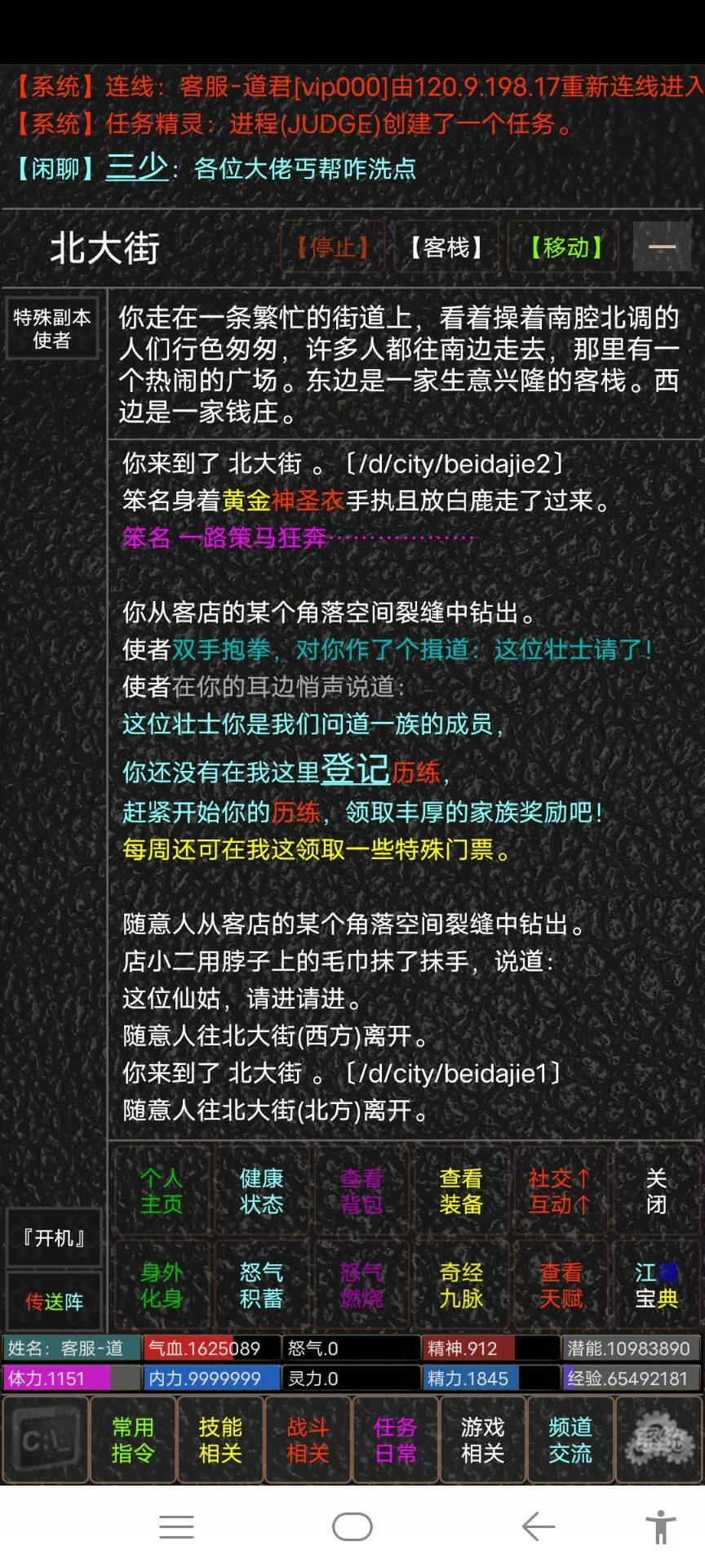 每周三千师门任务,全自动师门符,送一转前秒杀师门的野球拳。全新制作的门派武功,大迷宫二十多层,探索迷宫打超级BOSS,有高额奖励。高级副本炎黄神庙,掉落神级套装,含解密,BOSS炎黄二帝稍有难度。高级副本吗女娲神庙,掉落神级套装和散件,通过解密选择两种女娲BOSS获得不统奖励。两仪阵,九宫阵各种阵法破解后的最终奖励,非常丰厚。参加每天得屠人比武,刷副本打boss掉武功,掉装备,提升自身属性,学更强武功,乐趣十足。------------------------------------------------------------------ 江湖不是朝夕, 而是长久的纠缠…… 游戏不是麻木的反复练级, 而是随心的快意和恩仇。