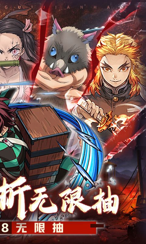 《鬼剑豪(鬼灭0.1折送无限抽)》新版本鬼灭之刃手游闪亮登场!画风剧情特效高度还原,高质量剧情让人热血沸腾! 0.1折福利满满,下载即领648代金券,上线即送疯狂十连抽,20张明星阵容卡牌免费任君选择!六大阵容可以随心所欲打造,超多超酷的流派体系。专属养成系统助你战力猪突猛进,新版本加入花街商贩PVP/花街高塔PVE/武馆挑战玩法,游戏内容更加丰满!升级就送极品抽奖,挂机就送充值卡,实打实的福利,真实有效的福利加码。漫改鬼灭游戏,英雄林立,王与王的对决,期待您的加入!