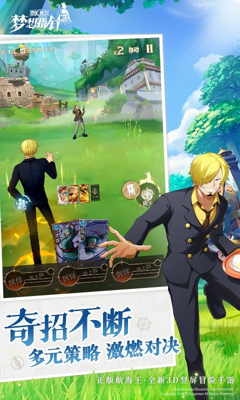《航海王:梦想指针》是航海王IP正版授权的全新3D竖屏冒险手游,历经三年打磨,新玩家前三天可获得一百一十抽,完成指定任务即可领取五星伙伴新世界路飞。【开局王炸 福利升级】开局王炸,福利放送!船长可通过开服的各个活动免费获得三个五星伙伴:新世界路飞,艾斯以及首个双形态五星伙伴鲁兹,还有共超过200抽的免费福利奖励等你拿!让船长们开局自带五星阵容,轻松开荒。【单手畅玩 轻松养成】躺着也能玩,海米入坑推荐之作!易懂的卡牌玩法,单手即可操作。还有无限扫荡,战斗跳过等设定,让船长们体会到轻松养成,摸鱼养肝的快乐。【高清3D 华丽奥义】游戏采用超过40000面的超清建模、超过100张精心绘制的原画,还有原作动画声优、原作动画音乐,配合每个伙伴都有专属的奥义!结合华丽的美术和战斗演出分镜,让船长们在高品质的动画中沉浸式体验草帽一伙的冒险故事。