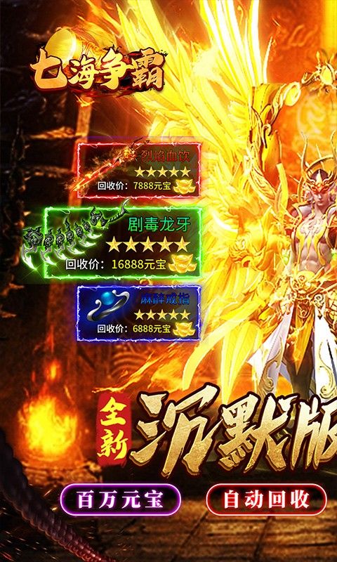《七海争霸(枫之沉默)》踏入这款满是热血激情的传奇游戏,开启你的独特冒险!上线即送逐日剑法、开天斩神技与 20 万元宝,成长礼包还有数万灵符、千万元宝及珍稀材料助你轻松开局。免费赞助可激活神技,大幅提升打怪效率,还有灵符激活且百分百返还的免费足迹,让你拥有炫酷外观。在线、首爆、登录都有丰厚奖励,元宝灵符拿到手软。这里玩法多样,从单人副本到多人团战,更能和兄弟并肩争夺沙城霸主,书写传奇篇章。