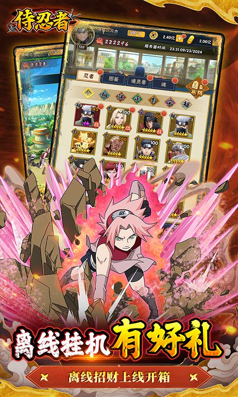 《侍忍者(天天代金)》一款以人气动漫为题材的火影卡牌手游,深度还原漫画剧情,再度重温鸣人的成长历程。每日签到送连抽,招募独特忍者,召唤通灵兽和尾兽,自由搭配无敌阵容。精美画面、炫酷技能、刺激的战斗玩法,离线挂机有好礼,离线招财上线开箱。传奇忍者同场竞技,一起体验全新的忍者世界。