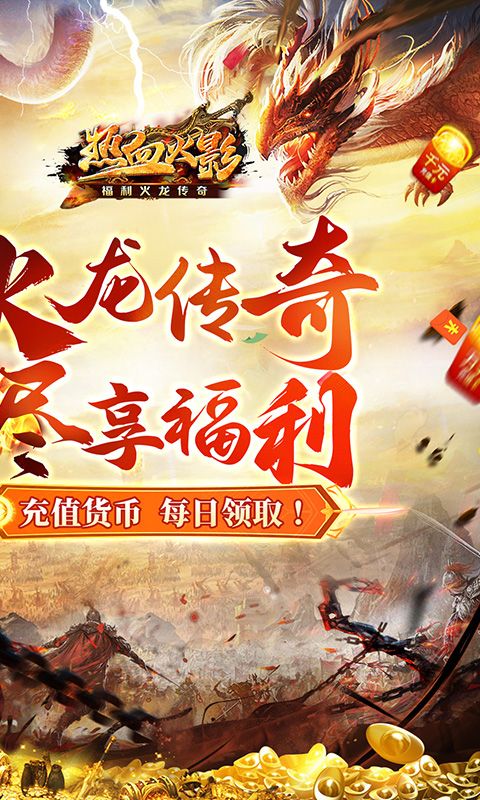 《热血火影(福利火龙传奇)》是一款经典的火龙传奇!上线送经典火龙称号,每日可领38火龙币,在线可领大量元宝、灵符、1元充值券,杀怪可兑换大量的提升资源,打怪提升两不误,至尊献礼,打怪免费可以领,大量福利就是爽,福利火龙传奇劲爽激情!
