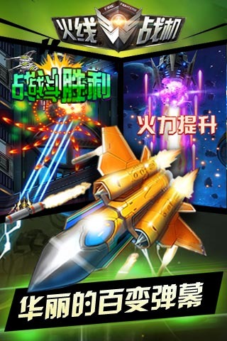 《火线战机》是一款星际题材的飞行射击游戏!延续了街机飞行游戏中的经典元素,完美手感易操作,高清HD画面,极致流畅体验!游戏中你将扮演<联邦>高级指挥官,带领你的飞机团队,挑战邪恶<帝国>势力。丰富内容超乎想象!精巧过关体验,炫酷战机任你选择,让你的双手欲罢不能!酷炫的画面效果,上千华丽弹幕!还等什么少年!去迎接曙光吧!