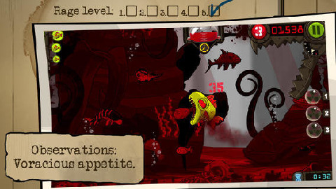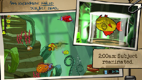 《僵尸鱼》讲述的是一个很离奇的故事,游戏拥有超过40级的游戏等级需要你挑战,超过80条鱼充斥着整个游戏,你需要的是倾斜你的设备,避免被大鱼吞噬,还要运用策略来躲避科学家的各种摧残。