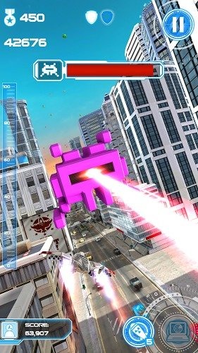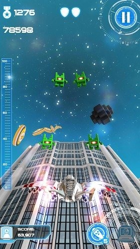 《喷射机跑酷-城市保卫者》是一款来自澳大利亚的飞行射击加跑酷元素的游戏。游戏中,玩家要在一座现代化大都市中驾驶一架未来战机,以高速低空飞行,在城市街道上空横冲直撞,穿行于狭窄的小巷,在爆炸的建筑物之间一路杀出,在母舰释放出新一波敌军时飞过高耸的摩天大楼,展示自己的飞行技术与反应力。游戏操控简单,轻按和滑动就可以转向、发射火箭。您生存的越久,外星敌人就越强,而且无穷无尽!