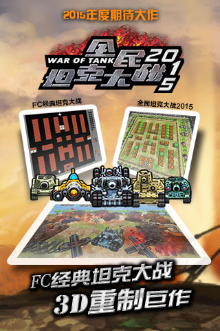 《全民坦克大战2015》,FC上的红白机“小霸王其乐无穷呀”坦克大战的重制大作,满满的儿时回忆与创新玩法的完美结合!想体验这种奇妙的感受么?赶快下载体验吧! 《全民坦克大战2015》是由咸鱼游戏发行、玩味游戏梦想工作室研发的一款融合了射击、养成、塔防等多种玩法的坦克射击类单机手游。多种坦克选择,既有各类主战超级坦克,又能培养并驾驶你的专属坦克,快来参与吧!