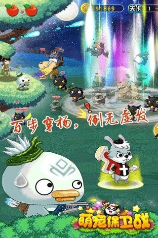 亿万萌宠玩家的最爱!弹无虚发的阿布、快刀如风的浣熊GG、再世华佗兔子MM、雷厉风行的熊猫大侠、魔法无边的猫咪小姐),华丽丰富的3D场景,强大的武器道具,绚丽夺目的粒子特效,邪恶可爱的怪兽恶魔,结合最先进的动作触摸技术,给你带来一个紧张刺激的魔幻世界。