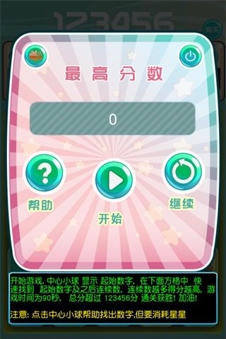 游戏中心提示玩家起始数字, 玩家快速找到起始数字及之后连续数,连续数越多每次得分越高.