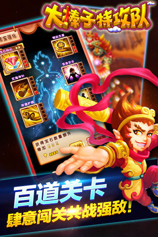 《大棒子特攻队》是一款轻松休闲的飞行射击类手机游戏。游戏以孙悟空大闹天宫,消灭天庭势力为题材。每一个关卡都是精心设计,玩家需要击败各路神仙boss,完成过关目标。