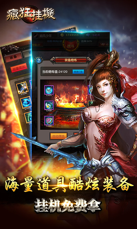 全球首款王城争霸放置类RPG手游,以挂机诠释经典!史上最懒游戏,拥有超乎你想像的简单玩法!神秘冒险的地图,耳熟能详的BOSS,冠绝全服的装备,不仅能寻找最初的激情!而且不用每时每刻关注着游戏。