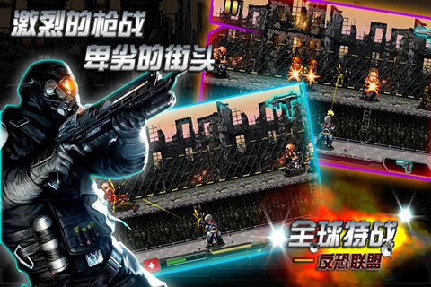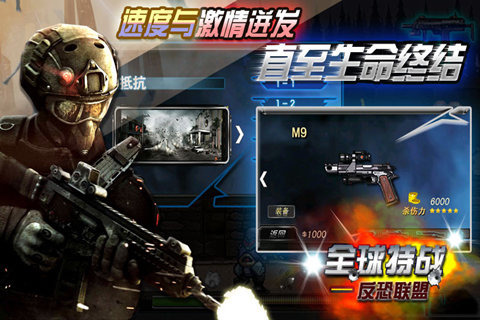《全球特战-反恐联盟》是一款劲爆十足的射击游戏,您将扮演一位反恐特警,去消灭恐怖分子,您可以使用多种强力武器,如:朗伯宁手枪、沙漠之鹰、ak47等等;游戏操作简单,画面流畅,动感的音乐使战斗更加的刺激紧张,还等什么,拿起武器加入反恐的战斗中吧!