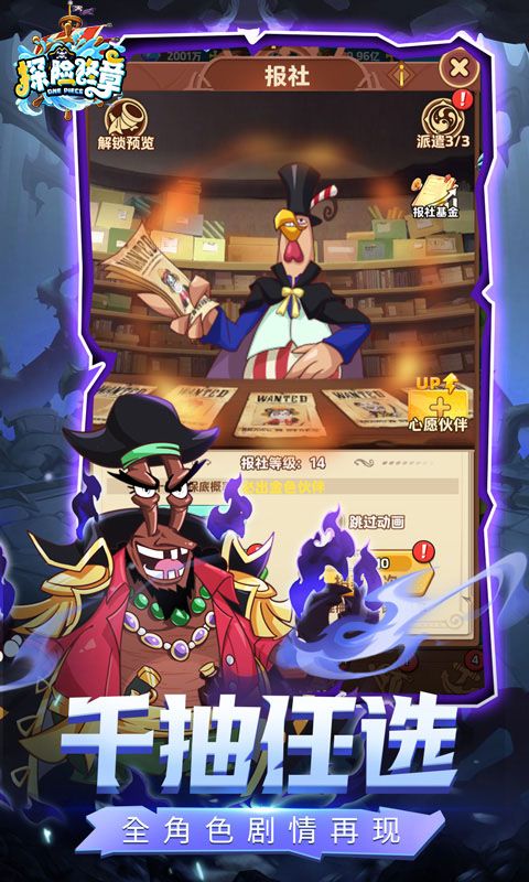 充值比例1元:10游戏货币;创意漫改复刻大航海,挂机爽玩《探险终章》!你喜欢的角色全都有,随行阵型随时调整,特效再现热血!解放双手,休闲冒险超轻松!欢乐社交组队大战世界BOSS,海域霸主谁与争锋!集结伙伴,守护就要去闯的信仰,壮志雄心齐走强者之路尽在《探险终章》!