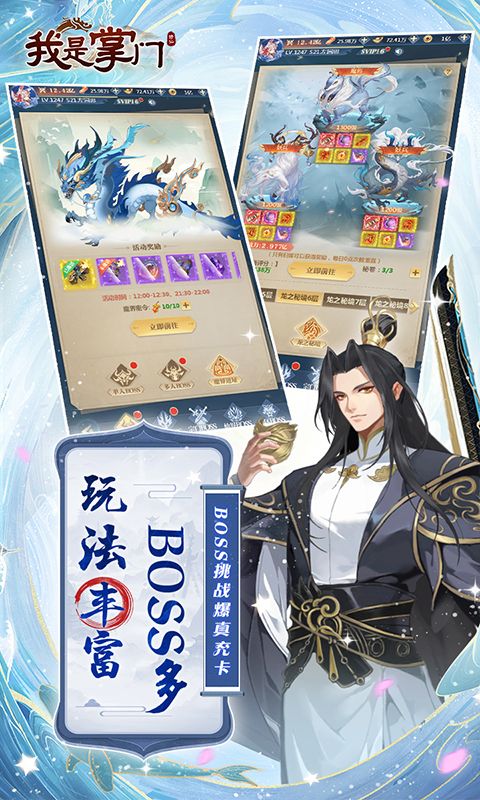 《我是掌门》0.1折开箱免费版,天天送6480元代金券。上线送3万元宝,100元气炮弹,自动开炮自动闯关,战力易涨快速修仙,真充卡幻化开箱出。在线送欧皇礼包,累计签到送真充卡。七日登录有豪礼,上仙指点有神技。多种玩法BOSS巨多,战BOSS爆真充,一起快乐修仙。