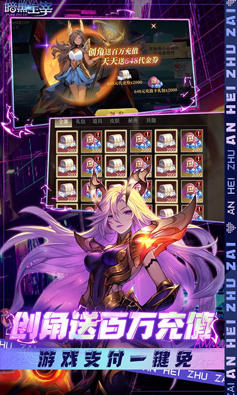 ★免费充值:创角送百万充值卡,天天送6480免单支付安心玩!