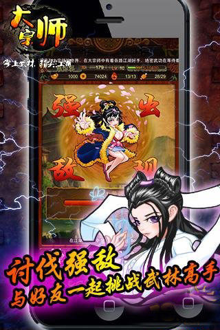 《大宗师》——掌上武林,指尖江湖 〓〓江湖浮沉,一生倥偬亦不过一瞬〓〓 〓〓剑试天下,敢问武林谁人能为尊〓〓 《大宗师》 是一款东方仙侠题材、策略对战类手游巨作,游戏引入了全新的概念式武侠,神兽妖仙来修炼,同时,独创的师徒协力作战系统,新颖的双线培养模式,为玩家提供了全新的游戏体验。作为一名为抗击外敌入侵,不断成长的江湖豪侠,玩家将游历五湖四海,探索奇境诡域。随着游戏剧情的推进,奇兽精怪悄然现世,神兵宝甲层出不穷,前辈高人偶露仙踪。游戏中精美的原画场景,流畅的动画效果,唯美的游戏音效,都给玩家带来更好的游戏享受。 大家能体验到通玄经奇脉,开八门四海的热血;结交八方英雄,共战江湖的豪情;更可以留名青史,成就桃李满天下的无上荣光。所有一切,尽在《大宗师》!