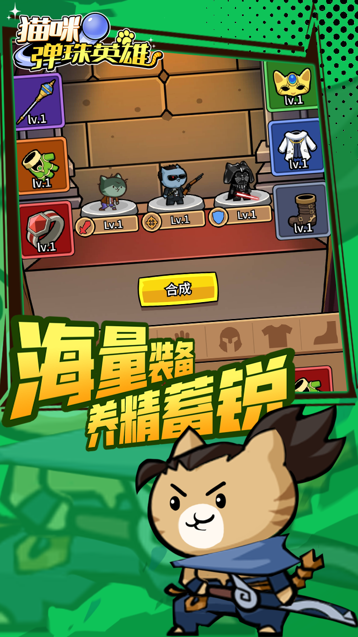 《猫咪弹珠英雄》是一款结合了多兵种即时战斗和弹珠台玩法的猫咪题材休闲游戏,猫咪可以自动排兵布阵、进行攻击,玩家只需动手发射弹珠,感受大量弹珠在屏幕中弹跳震动的快感,赢得大量分数来召唤更多猫咪英雄。>> 游戏核心玩法 <<--猫咪英雄将面临训练有素的鼠鼠敌人,稍有不慎便会全军覆没,玩家们需要运用运气与实力,战胜狡猾的鼠鼠--击败鼠鼠收集弹珠,在弹珠台玩法中发射弹珠肆意碰撞,激发不同效果,赚取更多召唤分数或获得强大的能力卡牌--从幽静的密林到热闹的村庄,再到炽热的沙漠,猫咪与鼠鼠之间的战争将持续到天涯海角,永不停歇>> 游戏特色 <<--三大兵种随意搭配,猫咪英雄独特的专属技能将组合产生多种变化--创意满满的呆萌猫咪,每只猫咪英雄都拥有特点鲜明的形象设计和战斗方式--开局获得猫咪,逐步养成升级,通过天赋和装备的助力,一路轻松闯关,获得丰厚奖励