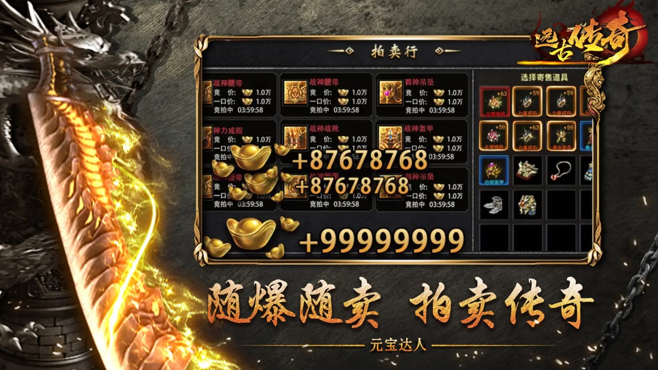 《远古传奇》是一款经典复古传奇手游,散人追梦,超多装备!上线送蛇年大吉称号装扮、自动拾物、自动回收、开天斩、逐日剑法,超值装备!上百张地图精彩纷呈,等你来战!游戏中还有热血沙巴克活动,集齐你的兄弟一起血战!超多奖励等你拿!游戏特色:1、上线送新手道天装备、蛇年大吉称号装扮、自动拾物、自动回收、开天斩、逐日剑法!2、超高爆率!装备全靠打!0氪也可以玩得畅快!3、回收装备可获得大量货币!4、全新玩法!全新体验!全新属性!5、再战热血沙城!全新攻城沙巴克,准时等你来战!