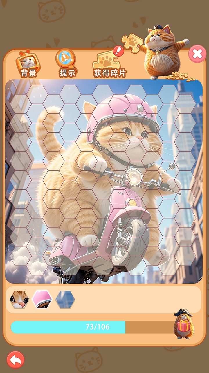 《我的拼图会跳舞》是一款充满惊喜与创意的拼图游戏,带你进入一个拼图与动画奇妙融合的世界。喵星人统治的世界,拼图完成,猫咪起舞!游戏特色:-超萌猫咪,应有尽有从优雅的布偶猫到活泼的橘猫,从高冷的波斯猫到搞怪的加菲猫,数十种不同品种、不同姿态的猫咪等你来收集!-趣味场景,身临其境在温馨的客厅、阳光明媚的庭院、充满玩具的房间等场景中,与猫咪们一起玩耍,感受喵星人的魅力。-专属动画,萌趣十足每完成一幅拼图,你都能欣赏到猫咪们独一无二的舞蹈表演!它们或优雅踱步,或调皮打滚,或追逐嬉戏,萌态百出,令人忍俊不禁。“圆滚滚的喵星人”主题,带你感受不一样的喵星人魅力! 快来与这些灵活的胖子们一起拼出快乐,舞动精彩吧