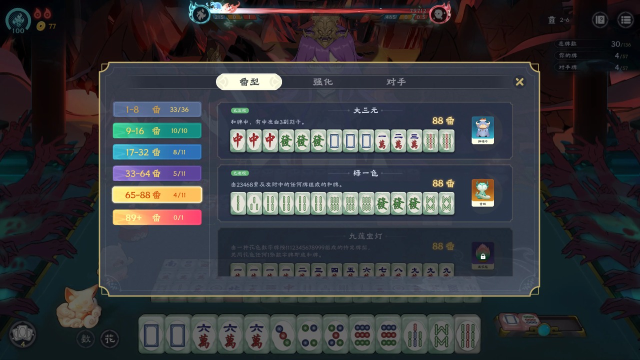 《我在地府打麻将》是一款以麻将为灵感并结合了麻将基础玩法的卡牌构筑肉鸽游戏,在这个大家都疯狂沉迷打麻将的地府,上至阎罗、下至女鬼,个个都是搓麻高手,当然,这里的麻将与阳间大有不同——它更狂野、更丰富、充满了策略性和意外性。用你手中的麻将构筑出强大的番型组合、胡出难以想象的超高分数、针对Boss特点形成独特的制胜策略吧!