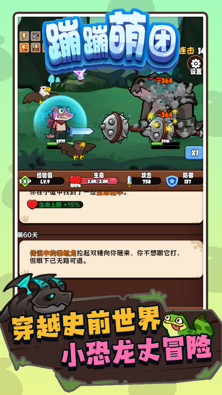 欢迎来到《蹦蹦萌团》这是一款融合“Q版恐龙主题”+“文本冒险肉鸽”的放置手游,你将扮演一只呆萌的小恐龙,在石器时代不断成长,挑战多样的BOSS、收集独特的宠物与装备,感受每天随机事件带来的惊喜与挑战!核心亮点:轻松休闲: 不争不抢,轻松游玩,随机惊喜,开箱得宝,躺平慢慢玩,主打就是个佛系慢慢玩!冒险肉鸽: 冒险途中充满不确定性,随机事件、资源选择、技能升级,每一次决策都影响生存,考验智慧与勇气!告别肝氪: 在Q版恐龙大冒险的世界里,享受轻松愉快的冒险之旅,丰富的资源福利,体验最纯粹的游戏乐趣!快和小恐龙一起,开启治愈冒险!