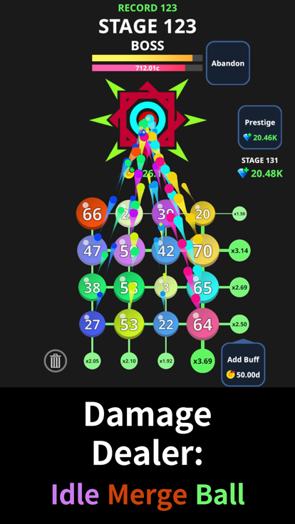 Damage Dealer是一款将空闲、合并和解谜恰当结合的上瘾游戏。“Damage Dealer: Idle Merge Ball”是一款引人入胜的空闲式游戏,你可以通过击败怪物在关卡中取得进步。主要目标是将带有数字的球放置在瓷砖上,将它们合并,并移动到更高的阶段。▶ 提升攻击力“Damage Dealer: Idle Merge Ball”是一款需要参与和选择性思维的游戏,而非仅仅是空闲。合并球以造成更强大的伤害,并强化瓷砖以击败怪物。通过观看广告获取额外奖励,并利用游戏内的各种元素,你可以顺利地通过各个阶段。▶ 声望和升级声望是游戏的重要部分。在正确的时间选择声望可以让你获取强大的升级。挑战第二次声望以获得更高级别的奖励。这个功能可以带来超越简单重置的惊人增强。▶ 排名竞赛你的成长结果可以在排行榜上看到。从突破阶段和击败boss怪物中得到的成就感,从强化瓷砖和合并球中得到的强大伤害,以及不断提高的排名 - 你的选择和努力将导致胜利。▶ 方便的游戏你也可以在游戏运行时接收离线奖励。为了玩家的便利,这款游戏不需要持续的在线连接。即使在你的休息时间,奖励也会累积。▶ 新挑战在“Damage Dealer: Idle Merge Ball”中,无限的可能等待着你的挑战。参与游戏,设计各种策略,冲上排行榜的顶端。这一次,你是主角!