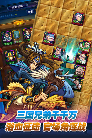 月黑风高杀人夜,一夜回到三国时!你最熟悉的三国英雄化身激萌人物陪你闯荡那段激情燃烧的岁月!操作简便富含策略的战棋玩法点燃你思维的火光;数十种经典三国宝物等您来发现;上百种强大的技能搭配助您称霸三国!还有独特的征夷玩法让您挑战连连乐不思蜀!更有丰富多彩欢乐无比的剧情性格迥异的人物让您这个马年不孤单!是谁趁这黑夜拿走了吕布的叉叉?又是谁趁这乱世把貂蝉抱回了家?一切尽在《将在囧途》!