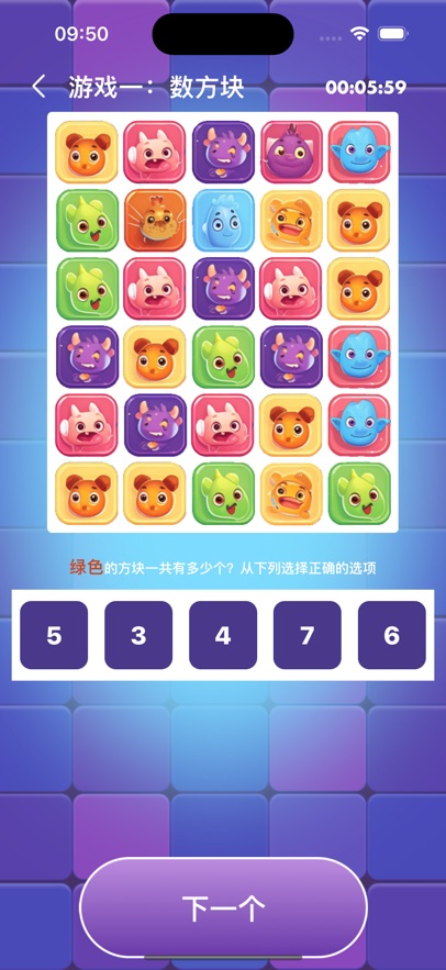 1.数方块:按照要求,数出来指定颜色的方块,从下方选择正确的选项
