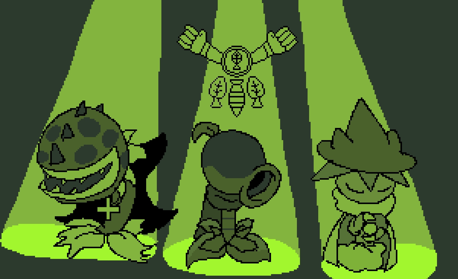 这是一个DELTARUNE的代入型AU,在此作品中,植物代替了光之民,而僵尸代替了暗之民(不全是),暗世界变成了一个个时代,黑暗喷泉则变成了时空裂缝,现在主角们的任务是停止时空乱流