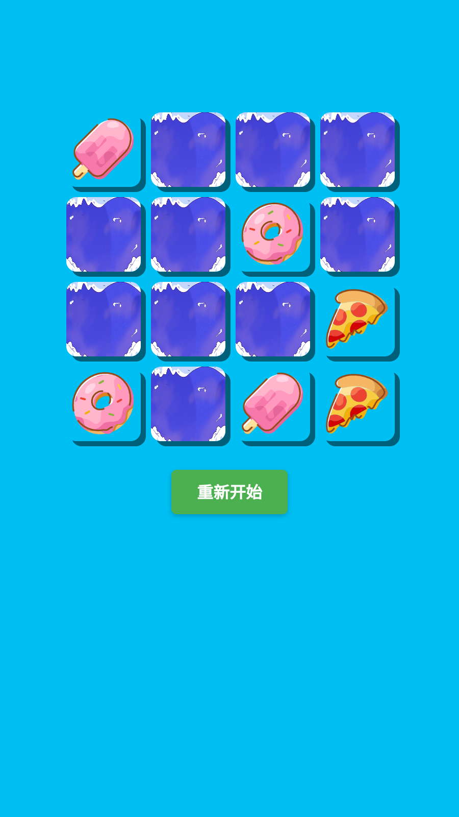 将隐藏在背后的水果翻面,找出相同的两个一样的水果!