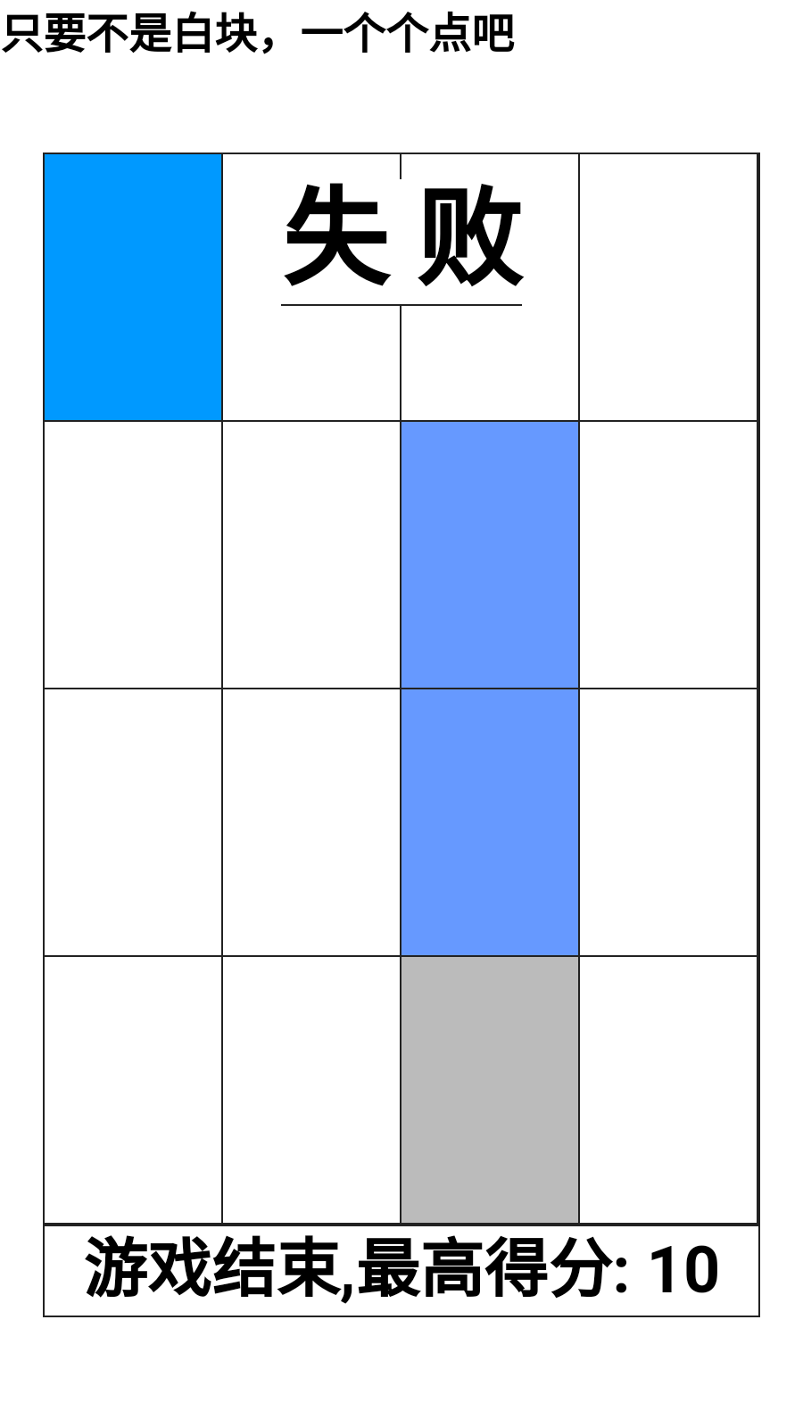 跟随方块下降的颜色,将不是白色的模块全部消除掉,如果漏了一个就算游戏结束,挑战最高连续消除多少个方块!