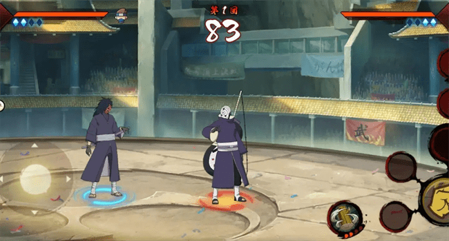 操控熟悉的火影角色来展开精彩的格斗竞技,通过简单虚拟按键来让角色展现各种酷炫技能,玩家扮演火影中各个形态的带土和斑,展开一系列刺激的战斗,自由选择你想要操控的角色,通过普攻、跳跃、瞬步、远攻、放招等键位进行pk