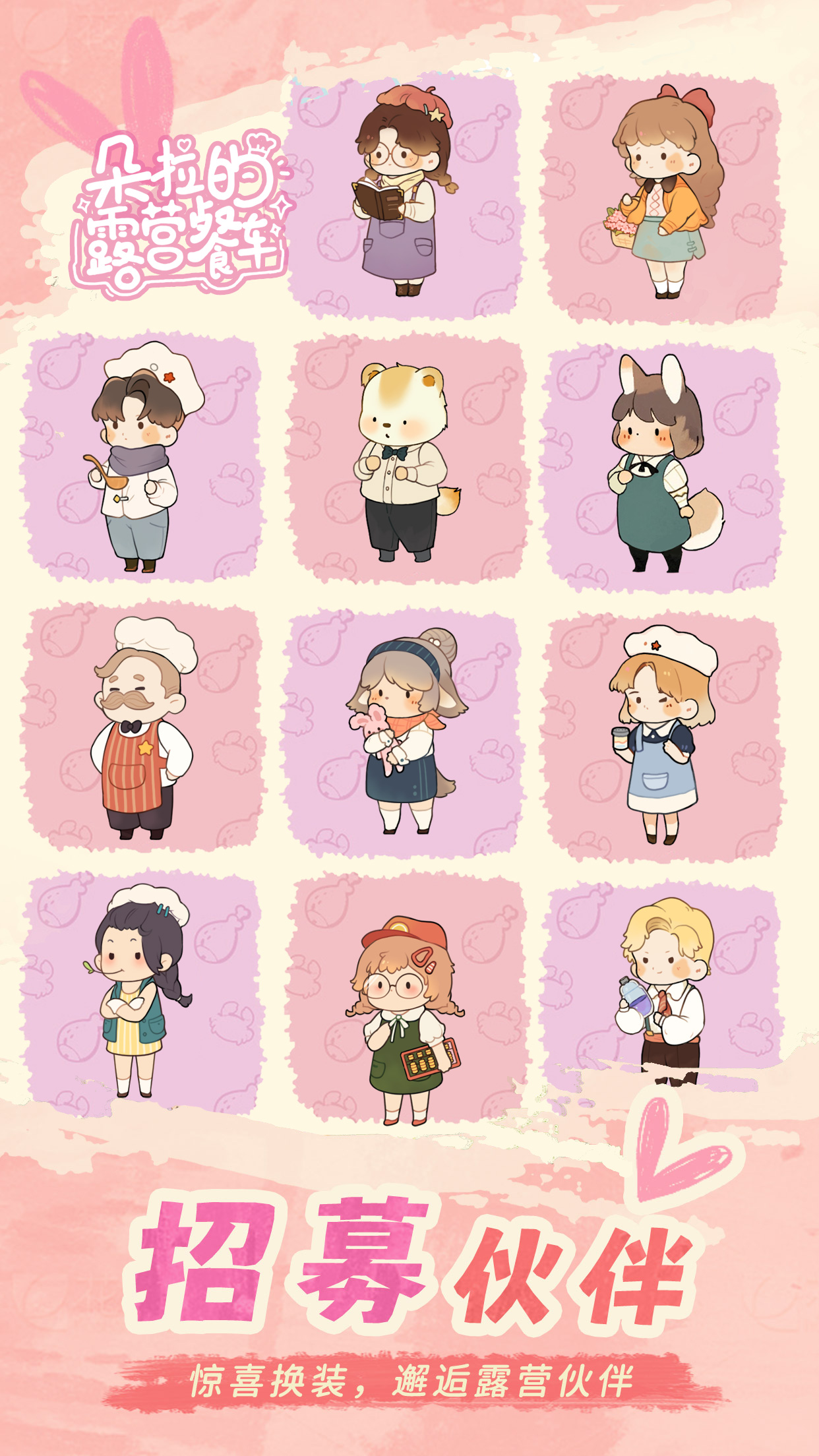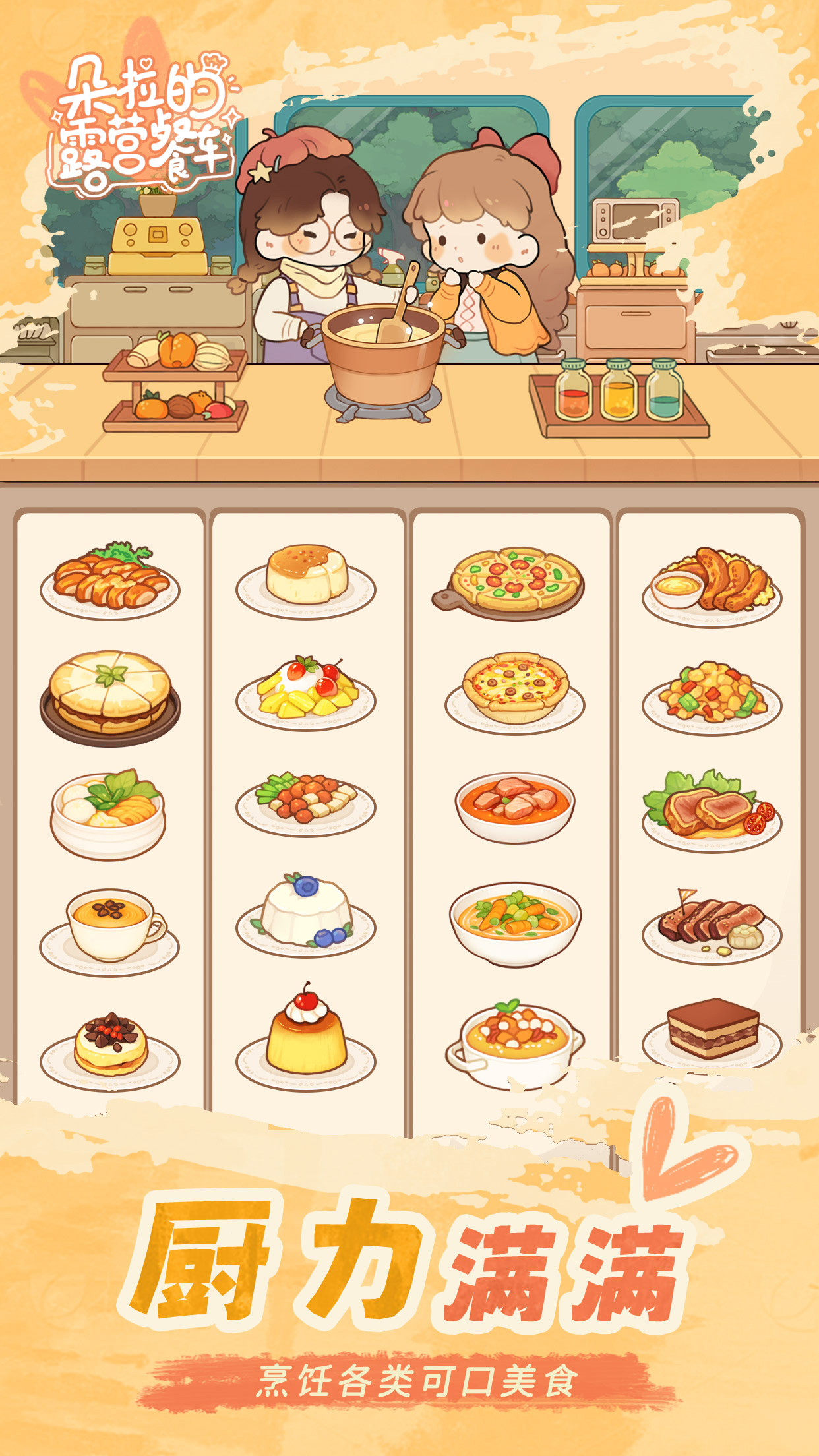 hi,我是朵拉,终于和大家在露营地见面啦!!---------------------------------------------------------这里是一款画风可爱,温暖治愈的经营养成游戏。1、更多露营地场景等待解锁,餐车,烧烤摊,温泉,花园等等。2、花式装修风格可以收集,欧式,铁艺,宫廷,海洋,雨林等等。3、各类神秘图鉴收集,可口菜品图鉴;神奇顾客图鉴等等。4、超多角色养成,招募伙伴,惊喜换装,有天赋大厨奇奇,有优雅调酒师威廉哦。5、旅行冒险,解锁露营日记和纪念品图鉴,更多暖心的剧情故事等待解锁。6、创意玩法缝合,合成订单,扫雷寻宝,开盲盒等待!各位店长,和我们一起开启一场暖心的餐车经营之旅吧!