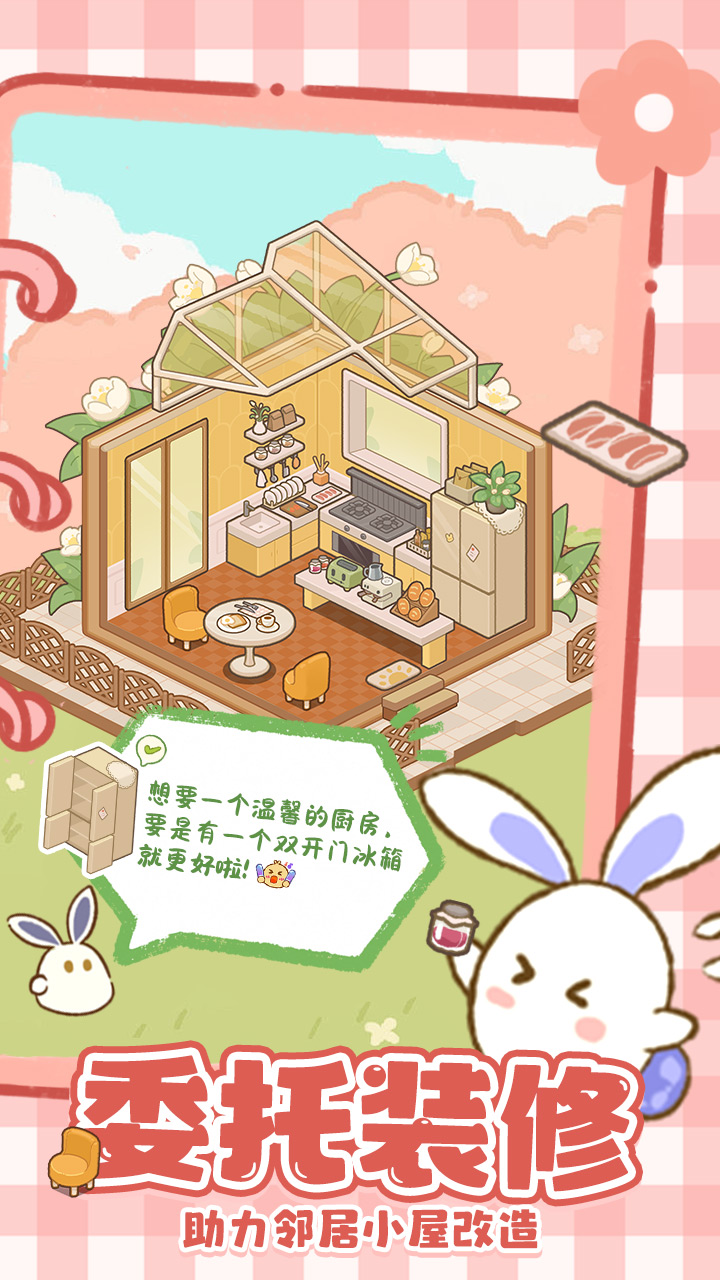 一切的一切,都要从一封珍藏于床头的信件开始。远离繁忙都市的喧嚣,回到幼时记忆中的美丽海岛,开启新的闲适生活吧。【游戏特色】装修、换装,定义出你最真实的自我,开始只属于你的故事。【化身设计收纳师,为委托人打造独一无二的小屋!】了解委托人身上的故事、了解他们的需求与喜好,将他们的期盼通过双手一一实现,你的每一次精心设计,都是一次触动他人生活的善举。【装修风格千变万化 总能找到你最喜欢的样子!】会打扫卫生的扫地机器人、能够弹奏优美旋律的钢琴.....超多可互动家具等你来发掘,打造属于自己的温馨小屋,.不仅是室内搭配,更有小岛装修在等待你随心所欲施展设计理念!【归园田居,享受田园带来的收获与喜悦吧!】闲适生活怎么能少了种田,种植作物、建造畜棚、磨粉制浆……用收获的果实或完成订单,或烹为美食,在这里,享受慢生活的节奏与乐趣。【每一次旅程的开启,都必定伴随着美好的相遇!】当性格迥异的邻居出现在你的身边,又会擦出什么样的火花?与邻居们或三言两语寒暄,或双向奔赴促膝长谈,每个人都是自己故事的主角,或许,你有兴趣了解TA的故事吗。