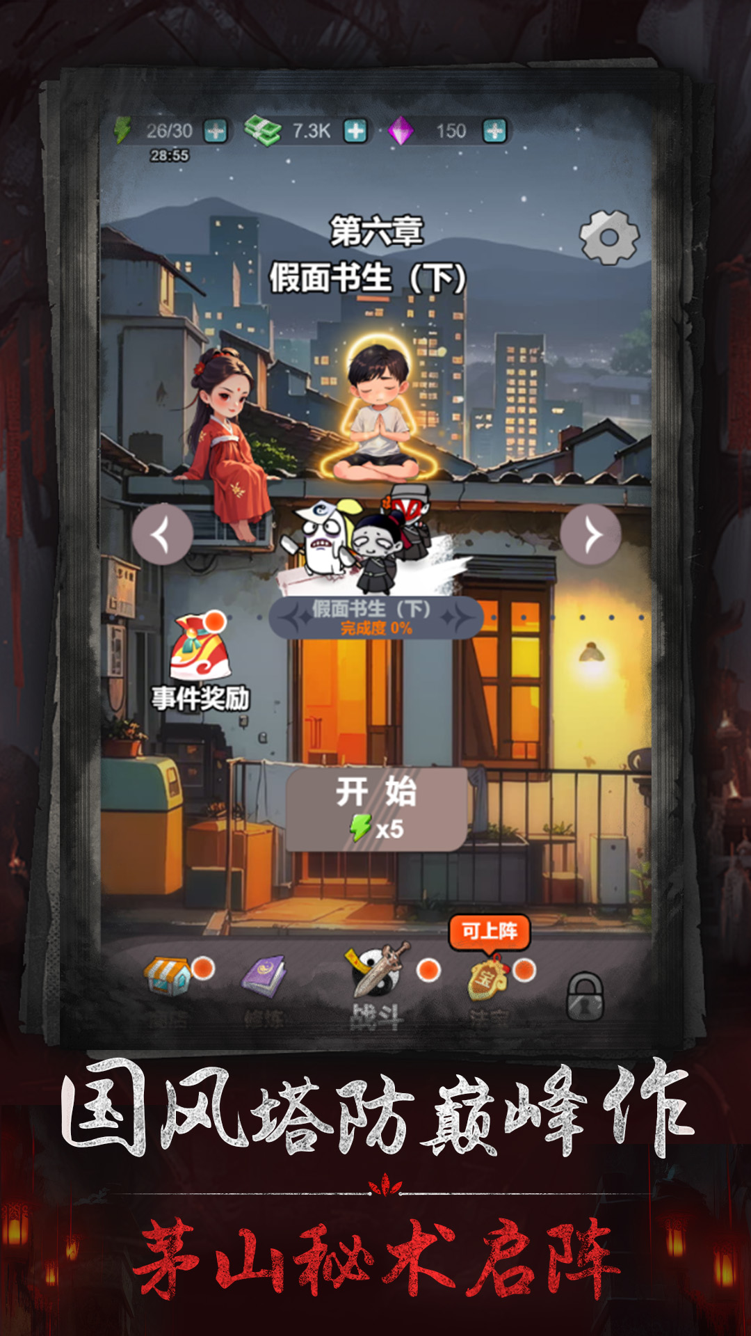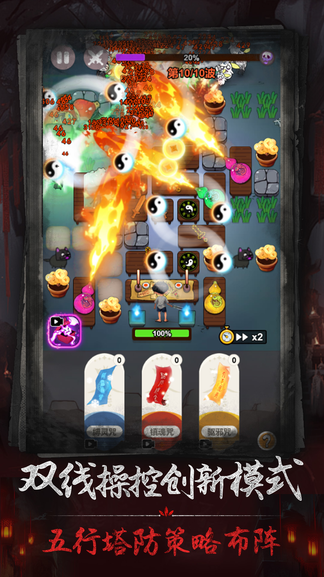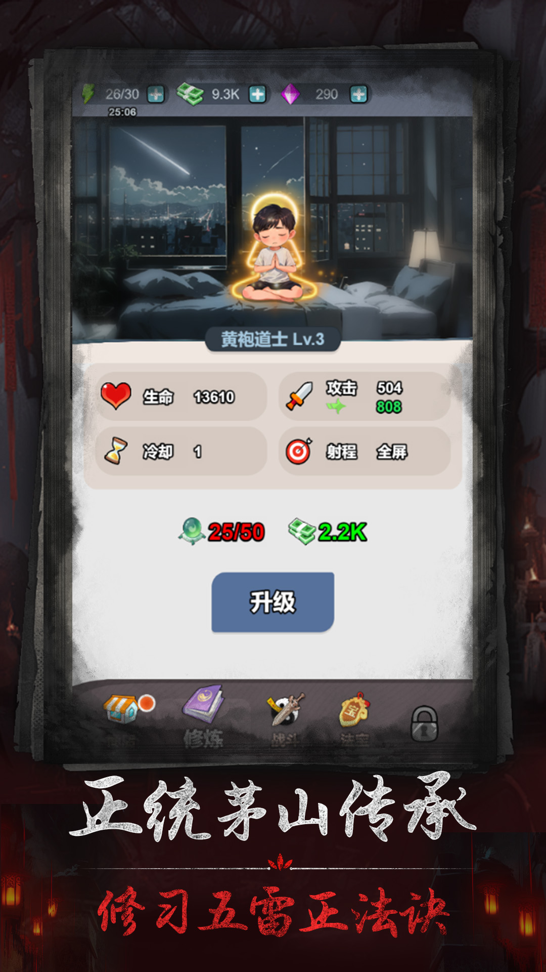 《茅山仙道》是一款集放置、塔防和肉鸽属性的休闲手游。你将扮演一位小道士,解锁和升级各种法宝来对抗怪物来袭。