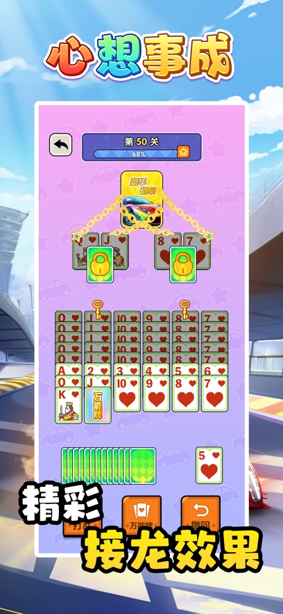 欢迎来到心想事成!在这里,您将面临一场智力与策略的较量,目标是通过巧妙地使用扑克牌,清空所有的列并解锁豪车!