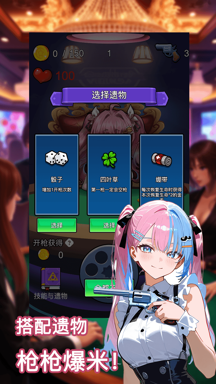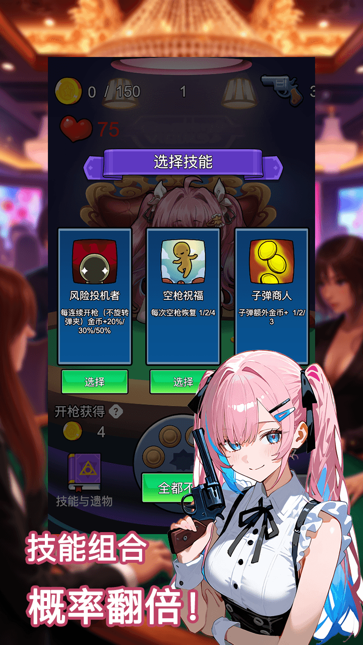 游戏结合了恶魔轮盘+幸运房东+肉鸽等元素是一款看运气,算概率,搭配技能遗物等等