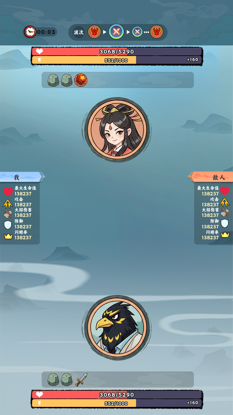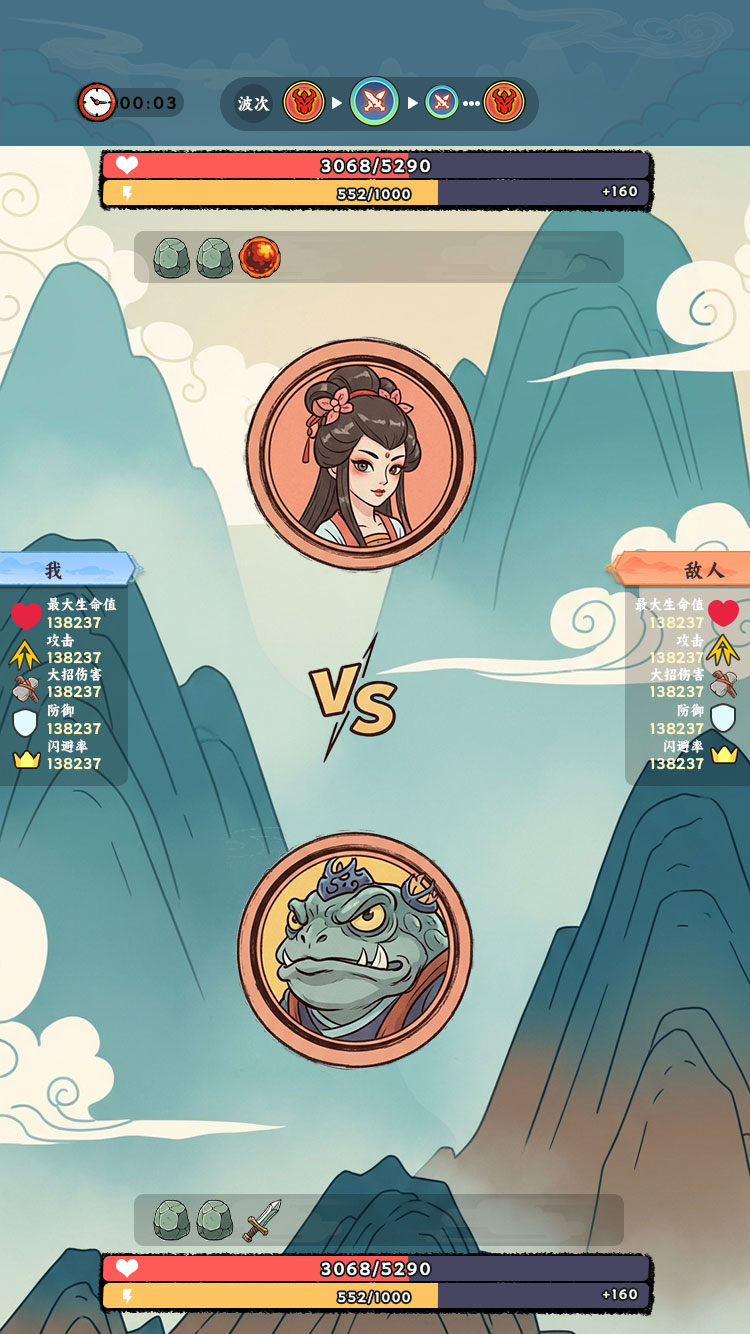 这是一款爽文开局的修仙肉鸽对战游戏,玩家逆袭从底层修士到修仙大能的成长爽感。肉鸽玩法:法器对轰玩法+肉鸽选技能+肉鸽爬塔。主角:初始随机sss灵根,超爽自定义开局。养成:加入了炼丹炼器、家族经营等放置玩法。家族:管理宗门弟子,发展家族势力。