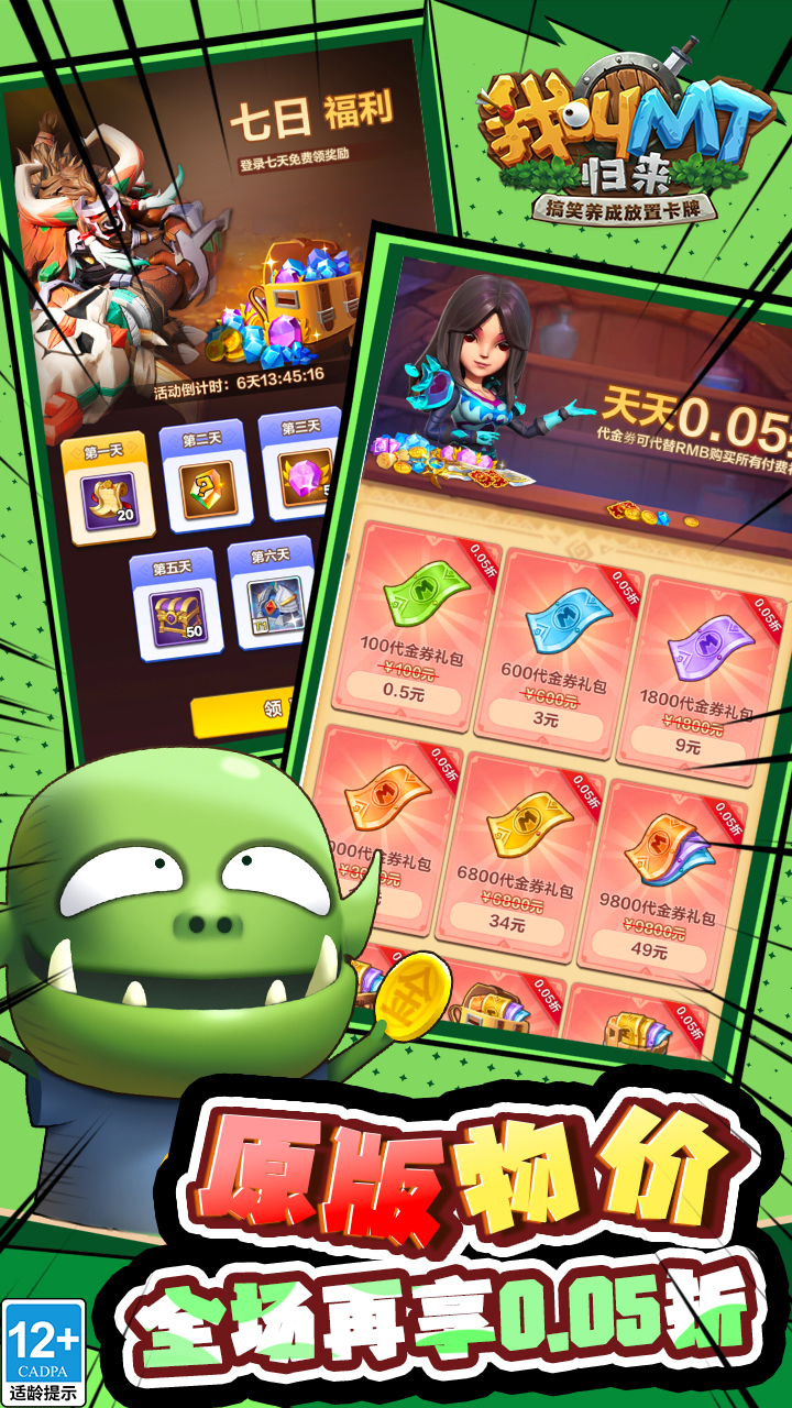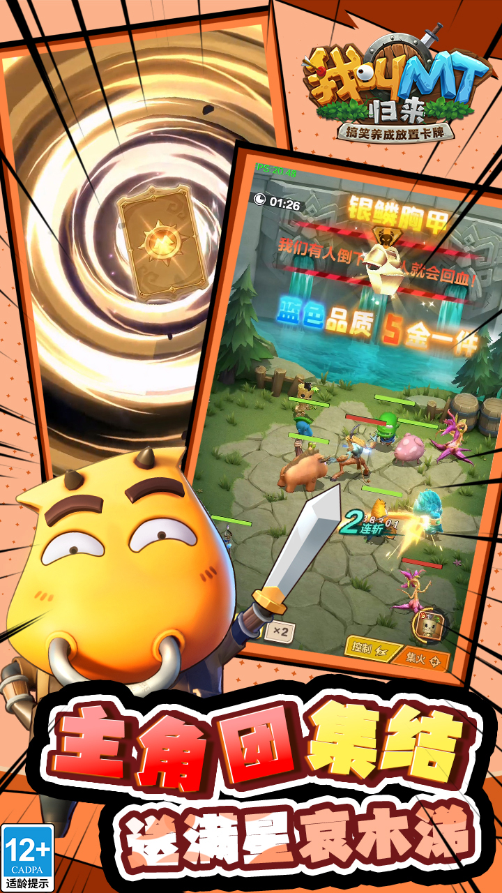 《我叫MT:归来(保真0.05折福利版)》是一款由同名动画正版授权的0.1折搞笑养成放置卡牌手游。原汁原味还原动画经典剧情,玩家将组建自己的五人小队,和哀木涕、傻馒等熟悉的角色一起征战艾泽大陆!游戏副本设计了狂暴、复活等丰富有趣的Boss战斗机制,玩家需要通过“集火”、“控制”应对挑战,巧妙通关。上百角色爆笑羁绊,九大职业随心搭配,无损换将等级共享,轻松不肝快乐养成。更有欧皇洞窟、秘境寻宝、冒险远征、游乐场等超多趣味玩法。