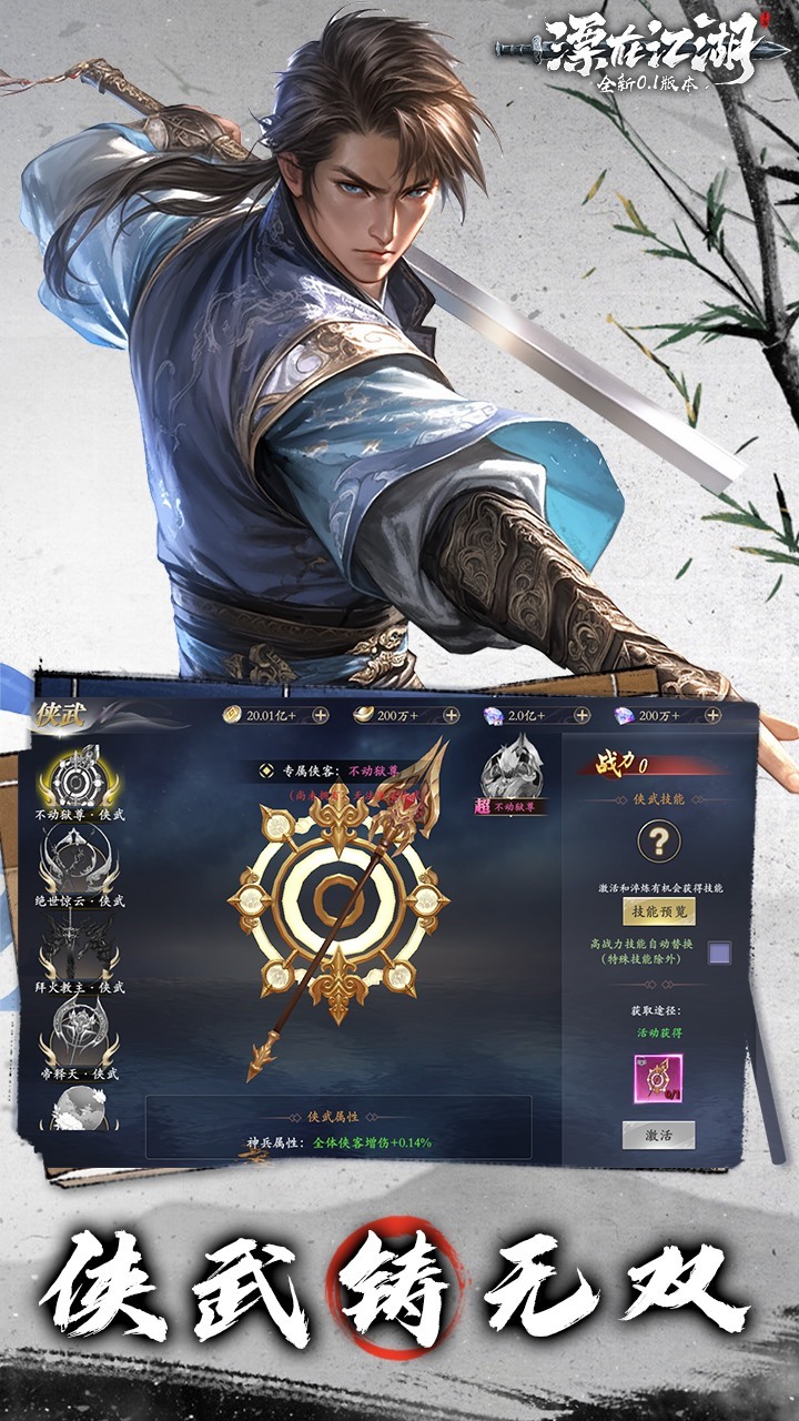 《漂在江湖》是一款以江湖武侠为题材玄幻MMO手游,以顶尖的次世代技术打造最精致细腻的仙武侠大世界。这里拥有开放式全景大地图,百人组队开荒首杀,全图PK爆神装、自由交易,多重职业自由转职,全3D视角自由操作,360度自由轻功翱翔等玩法体验,均能让你沉浸式体验真实的江湖。跨服社交,炫酷特效,流光仙翼,旷世神兵,卓越坐骑,情缘修仙,盛世婚礼等等,无不体现着这个有血有肉的江湖。
