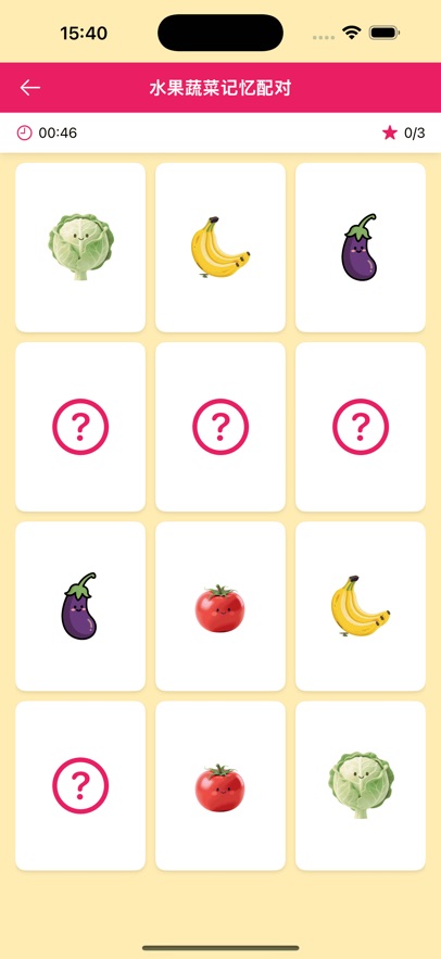 果蔬乐翻天汇集记忆配对、智能分类、拼图重组和创意绘画四种精心设计的互动玩法。精美界面配合渐进难度挑战,引导用户在轻松有趣的环境中提升记忆力、逻辑思维和创造力,完成任务更可获得丰厚奖励和成就徽章。