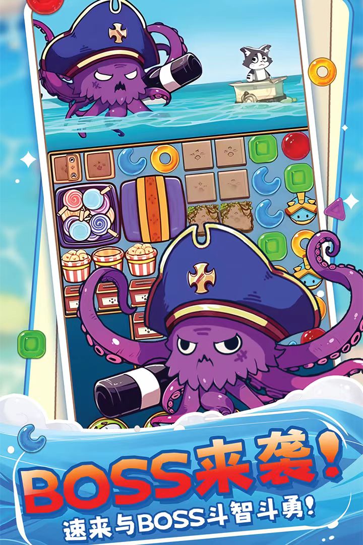 滑动手指就能凑出三消,轻松上手,手感爽快~伴随关卡推进解锁丰富多样的障碍和技能道具,和猫猫一起轻松出海快乐游戏!