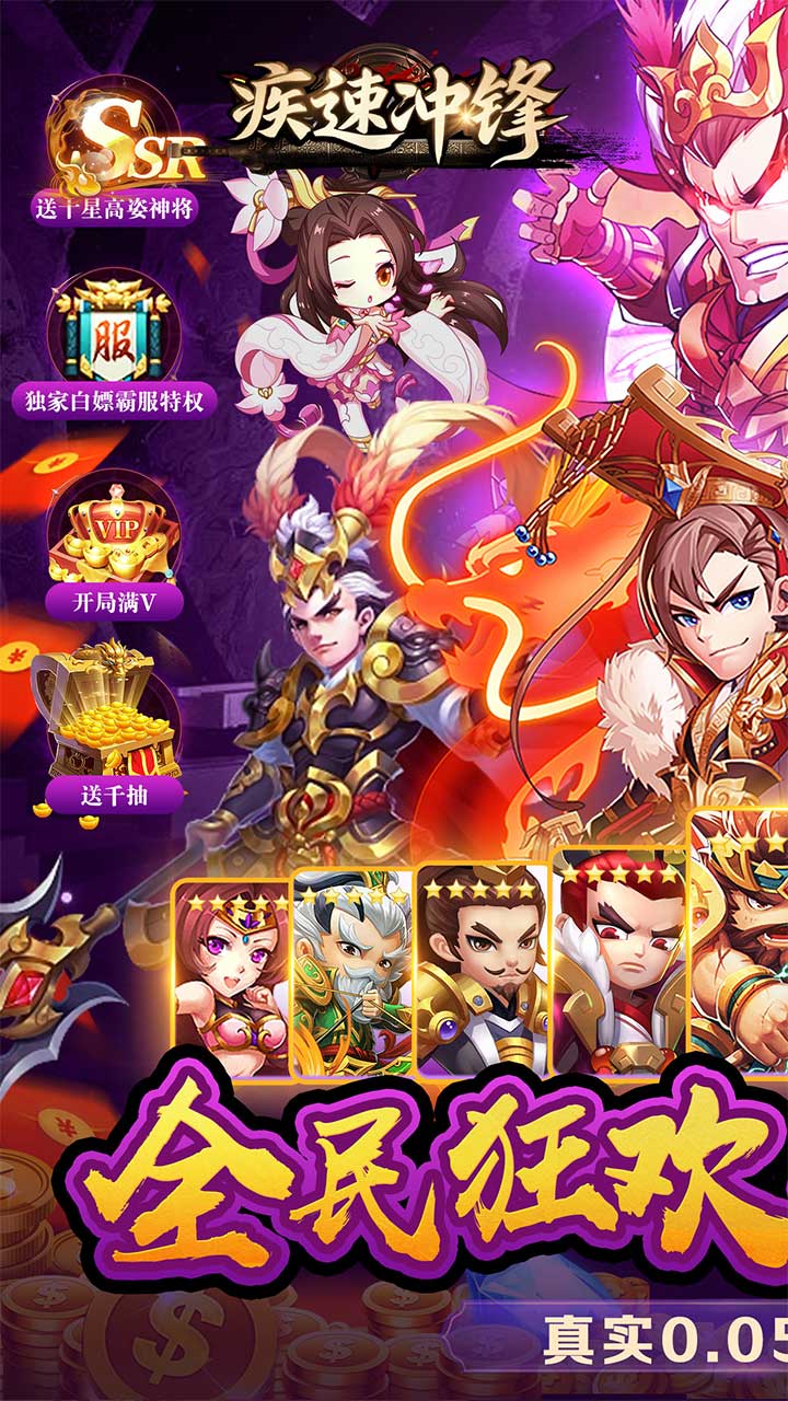 《疾速冲锋(谋定天下0.05折)》这是一款依托于英雄辈出的东汉末年至三国鼎立时期为游戏背景的0.05折三国卡牌游戏,因为时空秩序出现混乱,导致一部分三国武将被魔化和神化,少主你要在这个兵慌马乱的时代里闯出一片天。这将三国时期群雄争霸、战火四起的巨幅历史战争场面,在玩家面前一一展开。玩家将以穿越形式回到三国时期,不但能亲自体验桃园三结义、温酒斩华雄、千里走单骑、诛颜良斩文丑等精彩历史剧情,更可亲临讨伐董卓、官渡之战、火烧赤壁等经典历史战场,感受前所未有、独一无二的历史战争游戏体验! 精致唯美的游戏画面,引人入胜的故事剧情;自由的搭配各种武将和全新的龙婿霸服免费刷充特权,游戏内一切物品,只要花时间,全部可以白嫖,直接解锁超值各种礼包和其余特权,福利顶到炸裂。海量各种玩法~无论何种身份,这都是属于你的三国时代!