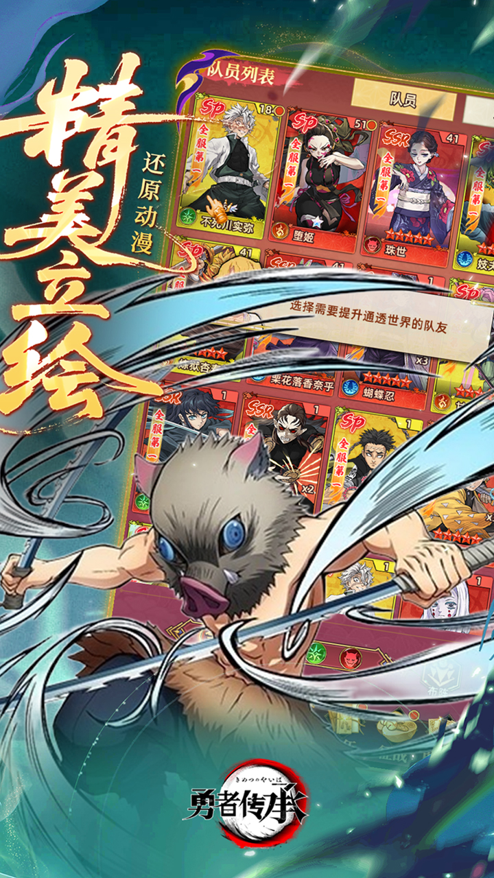 《勇者传承(0.1折鬼灭免费版)》是一款鬼灭题材的卡牌冒险游戏。本游戏故事设定在大正时期,传说太阳下山后,有恶鬼出没为祸人间。玩家将扮演猎鬼人,组建鬼杀队斩杀恶鬼、保护人们。