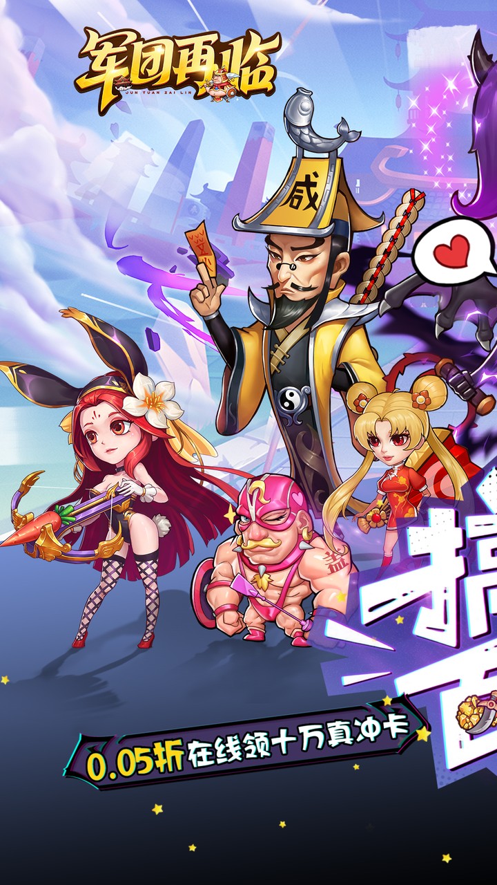 《军团再临》是一款三国Q版实时策略卡牌sdl手游,经典单机三国群英重制上线。游戏以华容道一役为开端,演绎出全新剧情,融入现代幽默诙谐剧情同时还保留了三国万人战场,让玩家在游戏中切身感受到三国战场争霸紧张刺激性。本次最大亮点是采用了时下流行的0.05版,旨在将福利拉满,让所有人都能更好的参与到激情国战中,一起来争霸天下吧!