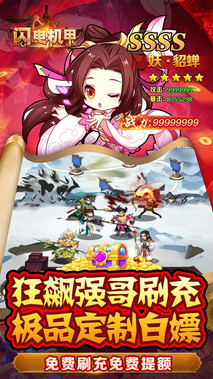 《闪电机甲》这是一款全新三国穿越卡牌手游,讲述的是作为现代人高启强一批人不知道为何时空错乱,回到了东汉末年的三国战乱时代,在这里展示了一场惊天动地的历史大改革。游戏里所有的充值全部真实0.05折价格,超低折扣等你来拿;暴力开局,完全不需要充值也能玩得很开心,最重要的是还有强哥刷充特权,游戏里所有的东西都可以刷充,简直爽得不要不要的。