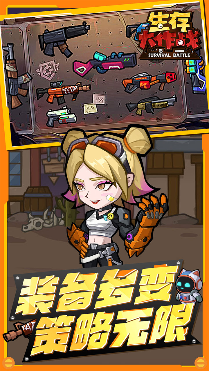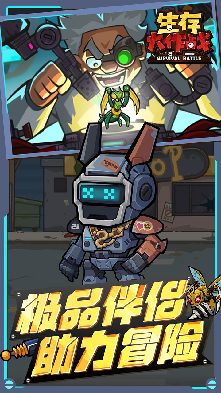 充值比例1:10钻石!《生存大作战》是一款以“末日生存”为核心,拥有末日体系的放置游戏。作为一个在末日世界里的勇敢者,你可以不断击杀丧尸、升级装备、一路进阶、结交战友,踏上生存之路。在这里,你可以体会到无限击杀丧尸的快感和末日危机。快来一起体验无限杀敌闯关RPG吧,踏上刺激冒险的生存之旅吧!这里装备种类丰富,设定多样化,升级街区就有机会获得更多极品装备哦!你可以培养各种高科技、高性能的机械兽,获得各式各样的特种装备,电磁护盾、肾上腺素、时空炸弹....等更多特种武器等你开启!还有任务系统、试炼系统、机械危机玩法、疯狂工坊、研究锁系统、引爆尸潮....更多精彩等你来探索!
