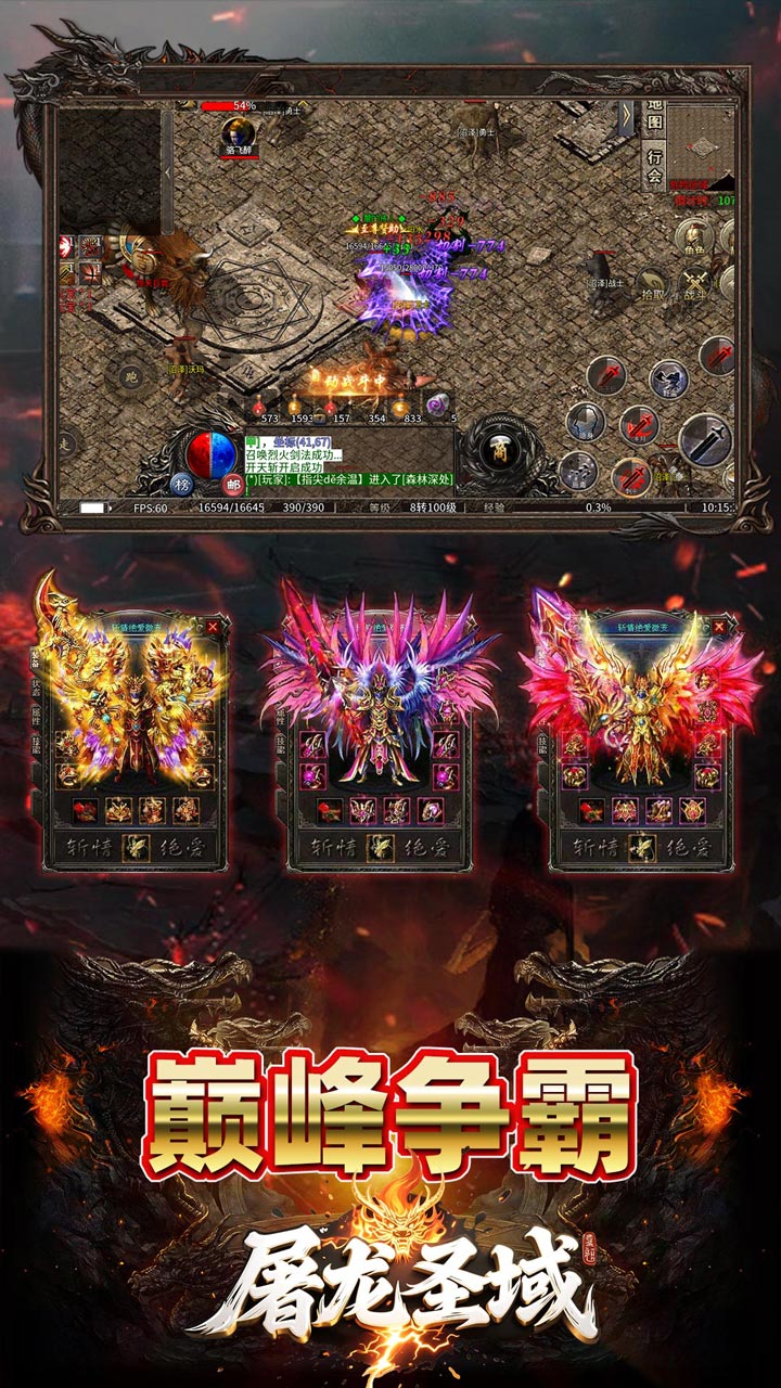 《屠龙圣域》经典180火龙单职业!本服所有装备,材料一切靠打!独家送超强属性,得超高爆率!登录签到就送百元真充,直接白嫖顶级赞助!全天活动激情不停,三天合区攻沙给予新区充足发育时间![九华火龙·特色玩法]1.装备强化 装备附魔 五行之力 神器装备 天赋异能 装备图鉴。2.武将系统 神秘锻造 成长之路 转生大师 技能宗室 跨服战场。